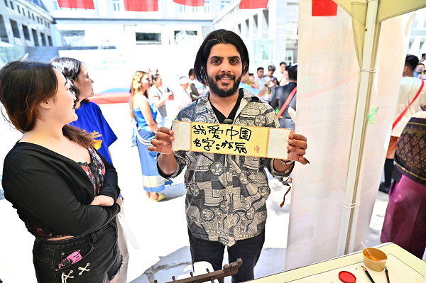 Meanwhile, the international culture displays were also in full swing in 40 booths in five exhibition areas. Students from different countries exhibited their unique cultures in diverse forms, including traditional handicrafts, mouth-watering delicacies and beverages, breathtaking scenic exhibitions and magnetic cultural interactions. The stall of China, in particular, drew attention with its display of intangible cultural heritage items such as lacquer fans and calligraphy, engaging both Chinese and international students.