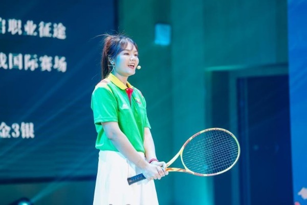 An overseas student representative shares her experience of studying in China at the 2025 Hubei Story Night in Wuhan, Hubei province, May 29, 2025. [Photo provided to chinadaily.com.cn]