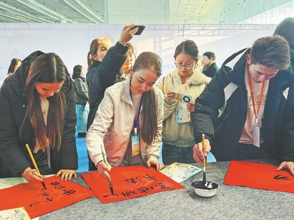 Participants experiment with calligraphy and the intricate craft of gourd pyrography. FANG AIQING/CHINA DAILY